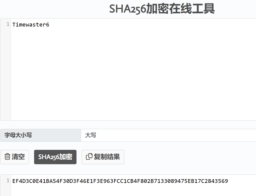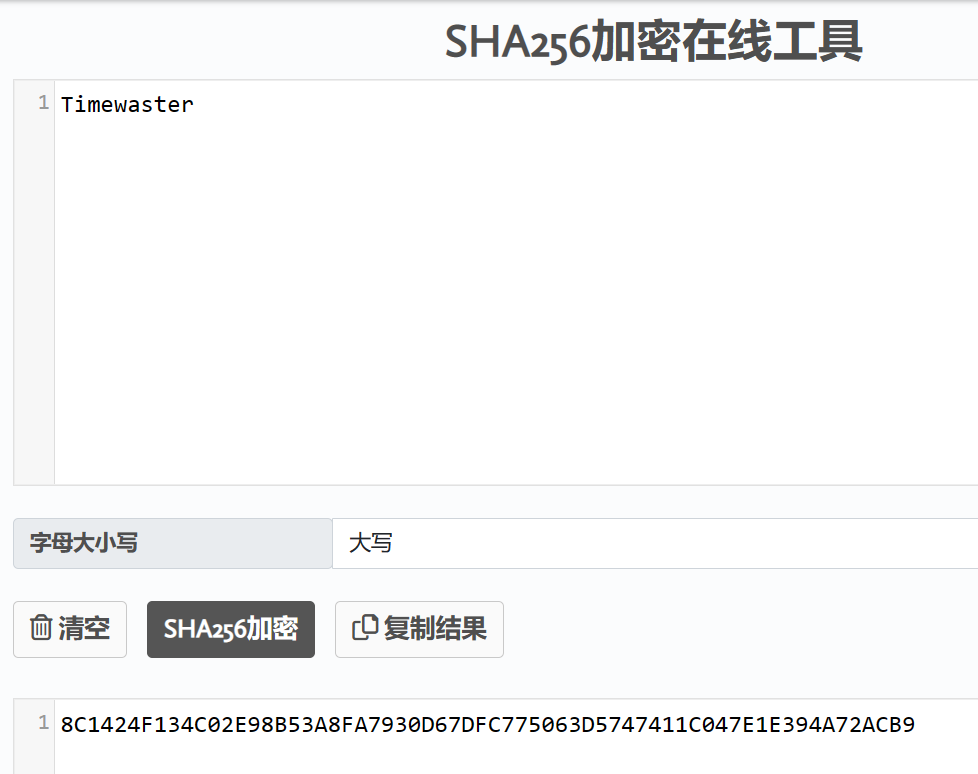 保密工作是做好了。另一个问题就是:就算看不懂,黑客还是可以乱改你的数据。该如何保证数据的准确性和完整性?我们可以用到另一个算法,想必各位都有所耳熟,叫做哈希Hash。哈希属于非对称算法,就是通过特定的算法生成一串唯一的字符串。目前网上常见的哈希加密方式就是MD5,BASE64,SHA1和SHA256。以SHA256为例,现在加密“Timewaster”